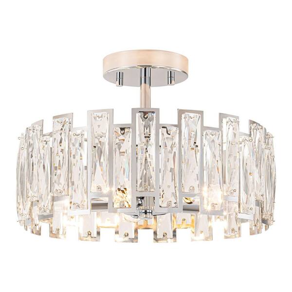 Aanay 12.9 in. 5-Light Chrome Modern Industrial Cage Cylinder Drum Semi-Flush Mount Ceiling Light With Crystal Shade