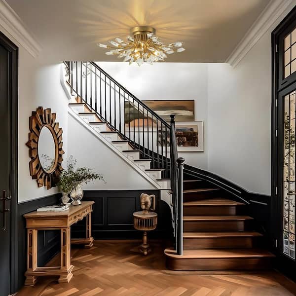 Adriao 21.2 in. 4-Light Modern Industrial Gold Linear Sputnik Crystal Flush Mount Cluster Starburst Ceiling Light