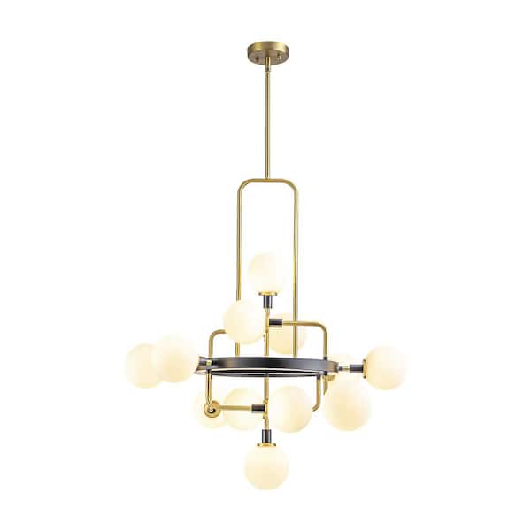 Ailn 12-Light Modern Glam Brushed Gold Geometric Frosted Opal Glass Globe Bubble Chandelier