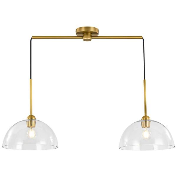 Allegra 60-Watt 2-Light Modern Gold Linear Dome Clear Glass Globe Bubble Kitchen Island Pendant Lights