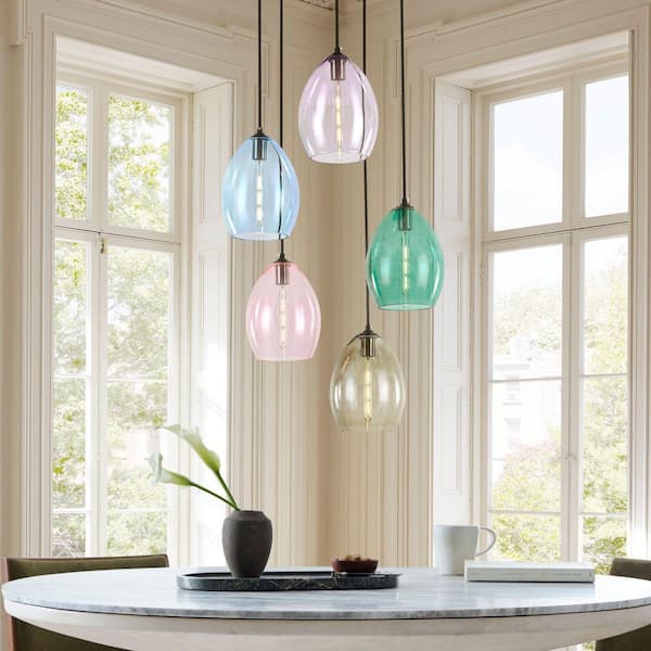 Allyn 5-Light Modern Cluster Black Pendant Light with Colored Glass Shade