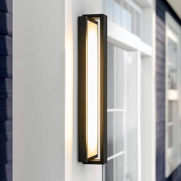 Amzie 16.1 in. Modern Black and White Rectangular Integrated LED Outdoor Hardwired Wall Lantern Scone Patio Light