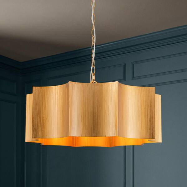 Avers 3-Light Gold Geometric Cylinder Drum Chandelier for Kitchen Island and Dining Room with no bulbs included