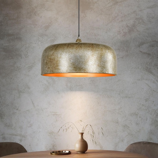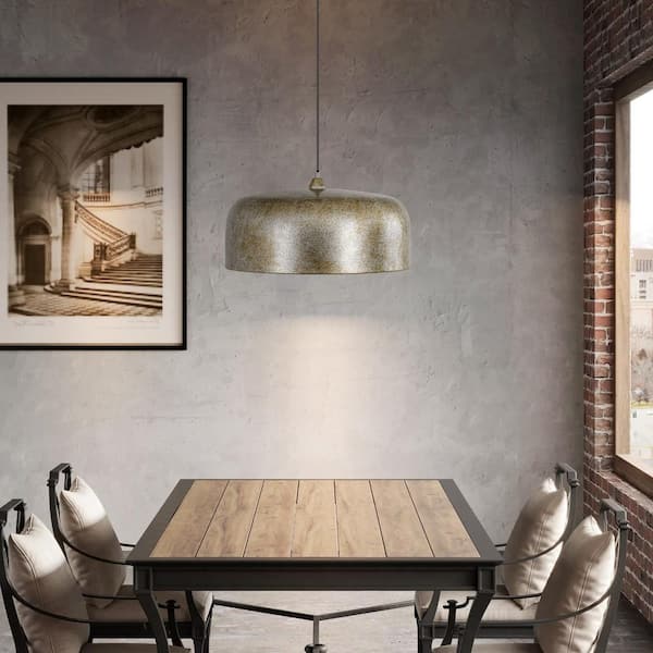 Axten 60-Watt 1-Light Modern Industrial Antique Silver Drum Dome Kitchen Island Pendant Lights with Metal Shade