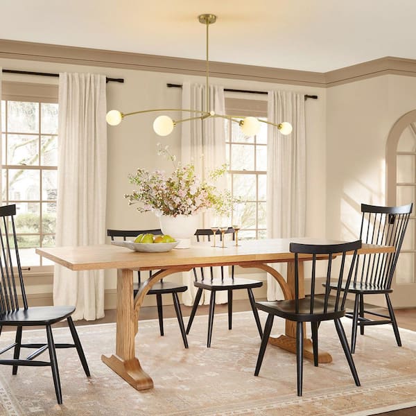 Cavitt 4-Light Brushed Brass Modern Sputnik Linear Long Strip Globe Pendant Island Light with Frosted Opal Glass Shade
