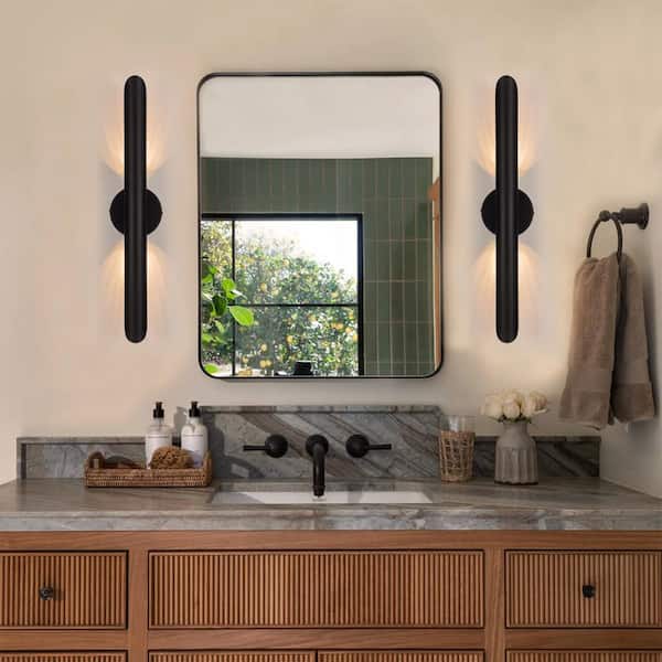 Cyma 23.6 in. 2-Light Modern Black Minimalist Linear Cylinder Geometric Wall Light Integrated LED Bathroom Vanity Light
