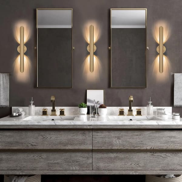 Cyma 23.6 in. 2-Light Modern Gold Minimalist Linear Cylinder Geometric Wall Light Integrated LED Bathroom Vanity Light