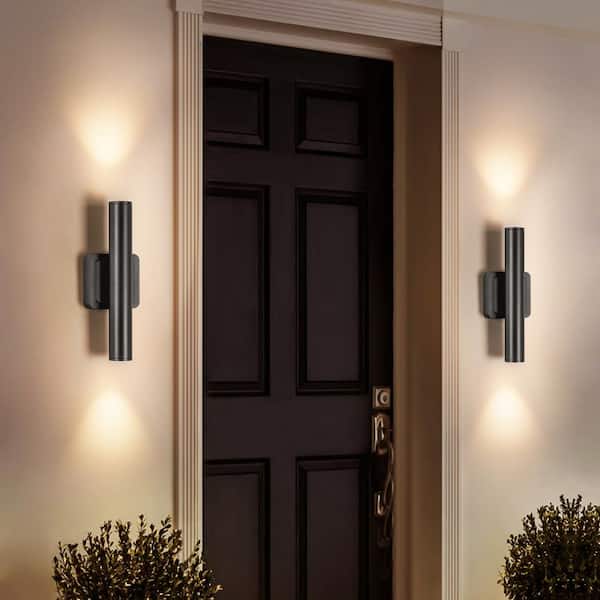 Elah 11.8 in. Industrial Black Linear Cylinder Waterproof IP54 Integrated LED Outdoor Hardwired Wall Lantern Scone