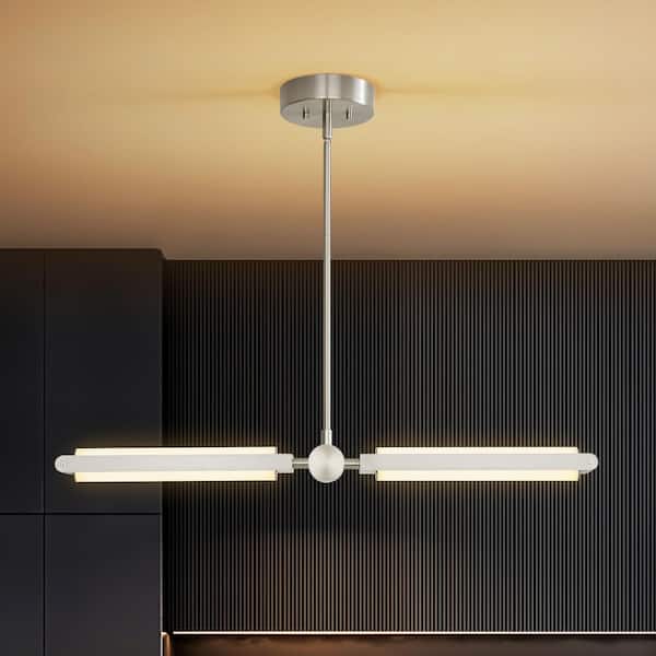 Elziabeth 2-Light Modern Linear Nickel Dimmable Integrated LED Pendant Light