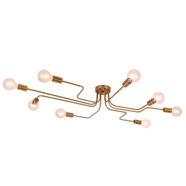 Gambrel 8-Light Gold Unique Sputnik Sphere Linear Semi-Flush Mount