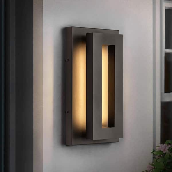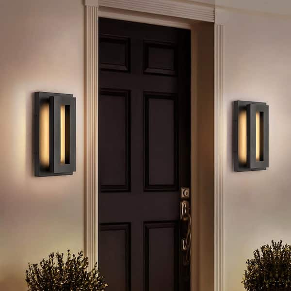 Gunnora 14 in. Black Aluminum Square 3000K Waterproof Outdoor IP54 Hardwired Wall Lantern Sconce Integrated LED