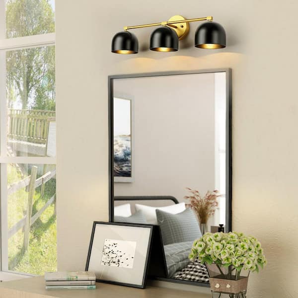 Hibner 23.6 in. 3-Light Retro Black with Brushed Gold Finish Linear Dome Bathroom Vanity Light with Metal Shade
