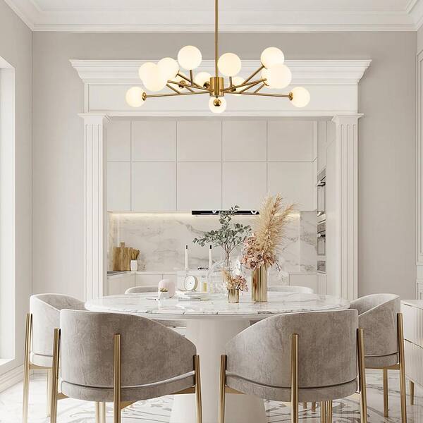 Higginsville 15-Light Farmhouse Gold Sputnik Sphere Linear Pendant Chandelier with White Jade Glass Shade