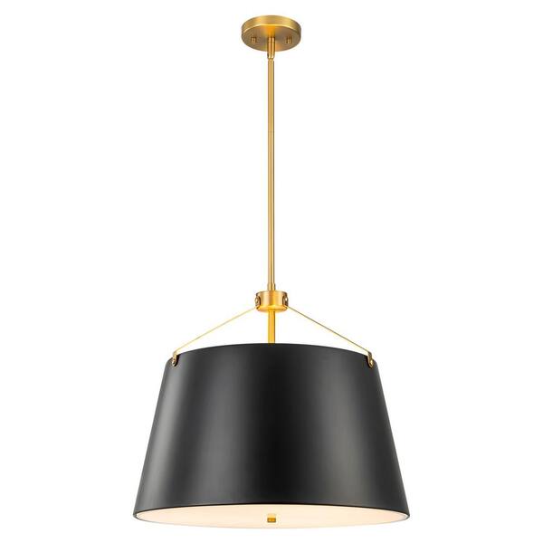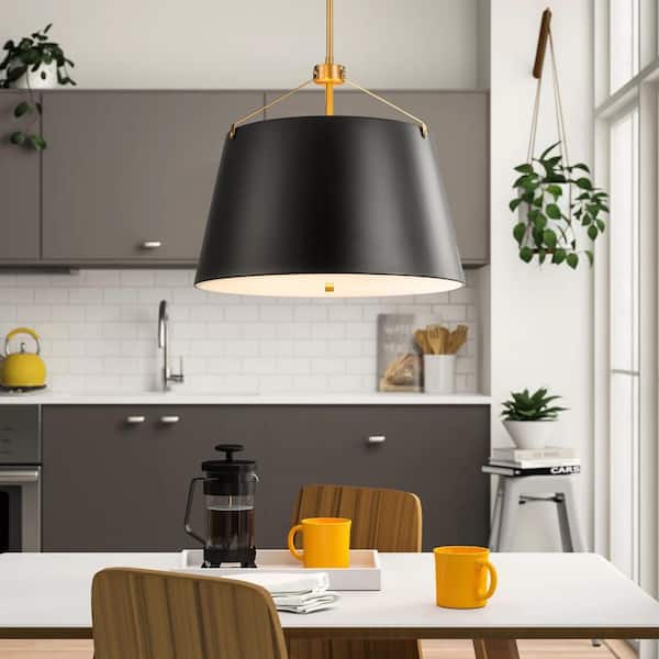 Ian 3-Light Modern Industrial Black and Gold Drum Pendant Light for Kitchen Island
