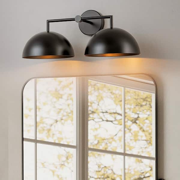 Jack 20.87 in. 2-Light Modern Industrial Black Dome Pot Lid Vanity Light with Metal Shade