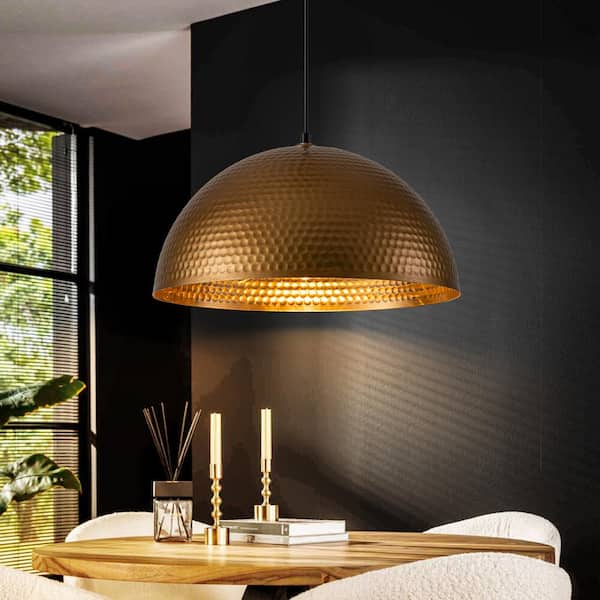 Jan 15.7 in. 1-Light Industrial Antique Gold Oversized Gold Leaf Hammered Large Dome Pendant Light with Metal Shade
