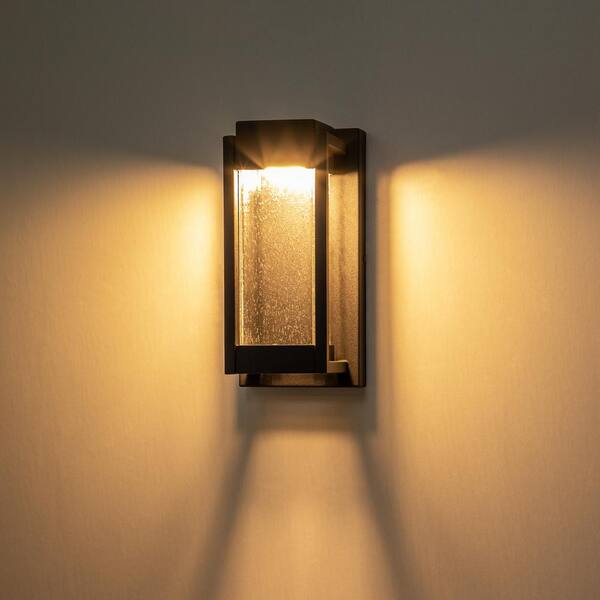 Kohls Matte Black Outdoor LED Rectangular Waterproof Wall Lantern Sconce with Bubble Glass Shade