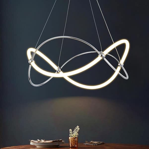 Mills 40-Watt 1-Light Chrome Modern Linear Geometric Dimmable Integrated LED Pendant Light for Living/Dining Room