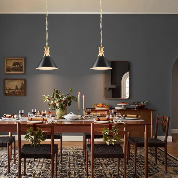 Naquin 1-Light Modern Industrial Black Cone Adjustable Pendant Light with Brushed Gold Metal Finish