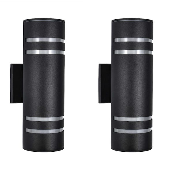 Roscoe 2-Light Black Outdoor Waterproof Lantern Cylinder Wall Sconce with Light Sensor with Light Bulb Type Not Included