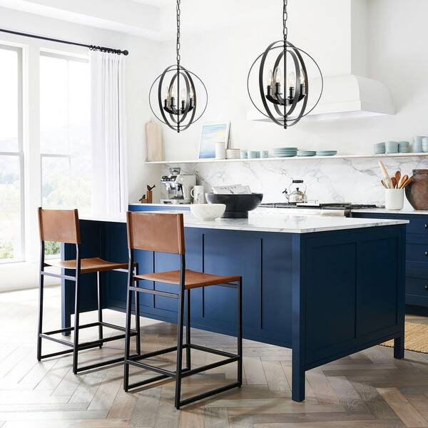 Rowley 4-Light Modern Matte Black Adjustable Globe Chandelier for Living Room, Dining Room, or Kitchen