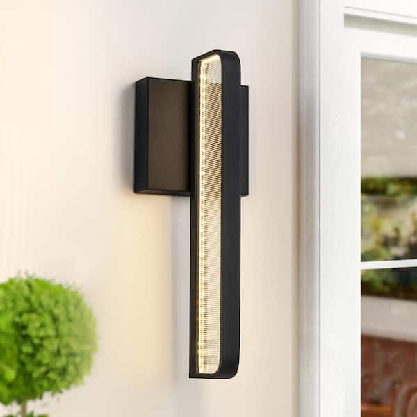 Saratoga 13 in. 1-Light Modern Black Waterproof IP54 Integrated LED 3000K Hardwired Wall Lantern Scone