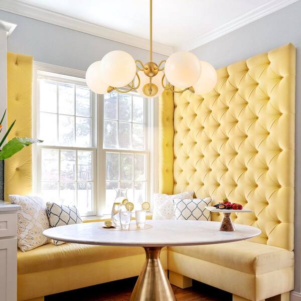 Shoshanna 5-Light Mid-Century Modern Gold Sputnik Polished Opal Glass Globe Bubble Chandelier for Dining Room