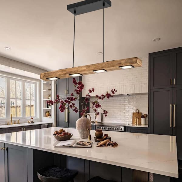 Wason 6-Light 31.4 in. LED Wood Linear Kitchen Island Pendant Light