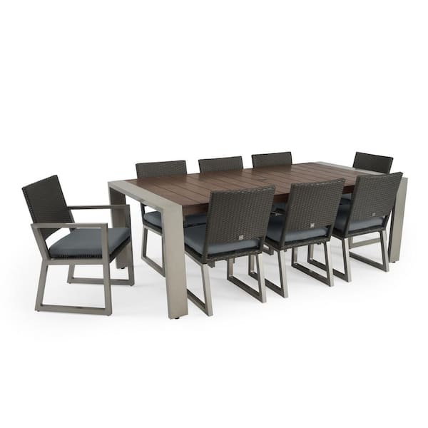 Milo Espresso 9-Piece Wicker Outdoor Dining Set with Sunbrella Charcoal Grey Cushions