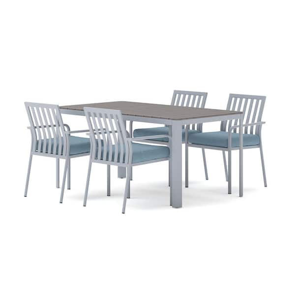Vera 5-Piece Aluminum Rectangular Outdoor Dining Set with Sunbrella Newport Blue Cushions