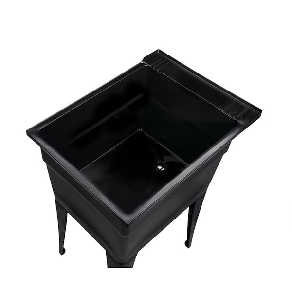 18in. x 24 in.Black Freestanding Utility/Laundry Sink with 1-Handle Black Pullout Faucet and Installation
