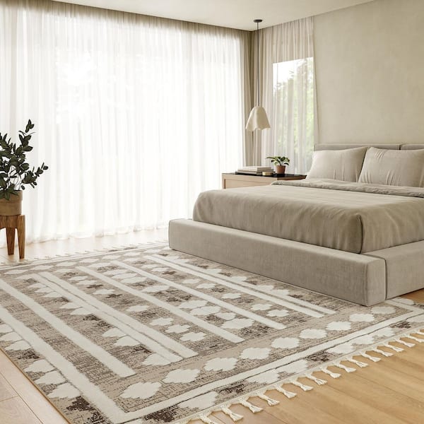 Audience Geometric Tasseled Beige 10 ft. x 13 ft. Indoor/Outdoor Patio Area Rug