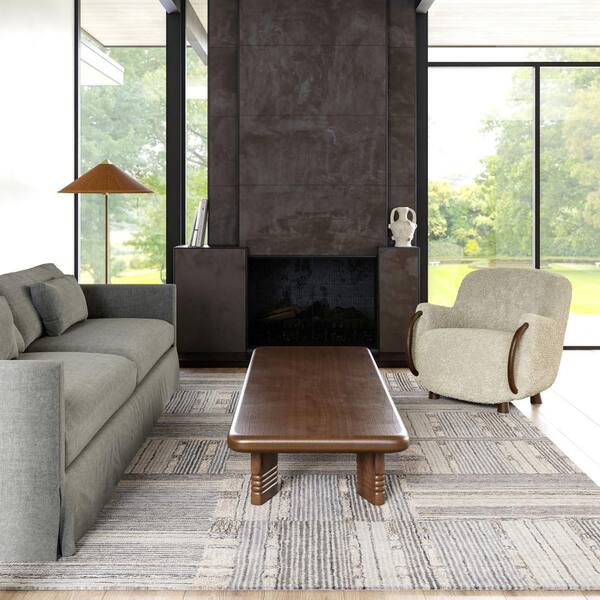 Deco Striped Tile Wool Light Gray 9 ft. x 12 ft. Modern Area Rug