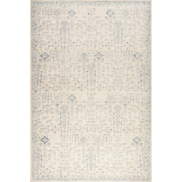Flora Wool Cotton Slate Blue 5 ft. x 8 ft. Indoor/Outdoor Patio Area Rug