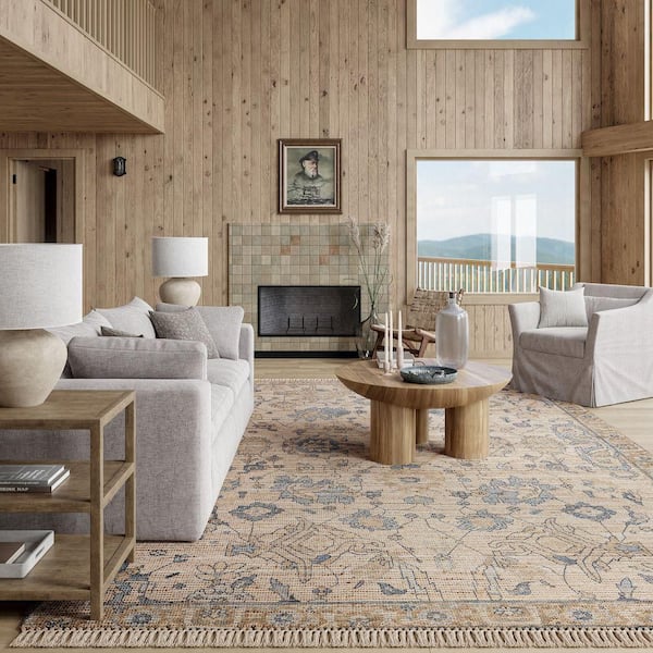 Marigold Vintage Tasseled Sand 9 ft. x 12 ft. Indoor/Outdoor Patio Rug