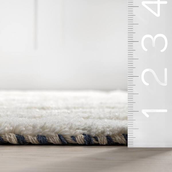 Merrick Tasseled Cotton and Wool Blue 9 ft. x 12 ft. Indoor/Outdoor Patio Area Rug