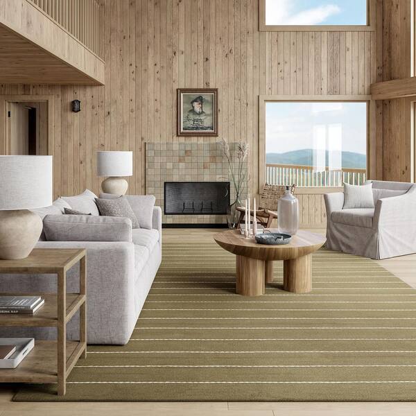 Nightwalk Striped Wool Olive Green 3 ft. x 5 ft. Indoor/Outdoor Patio Area Rug