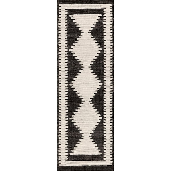 Sante Fe Southwestern Wool Blend Black 3 ft. x 8 ft. Indoor/Outdoor Patio Runner Rug