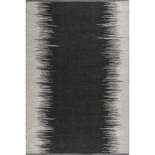 Wolf Reversible Wool Black 4 ft. x 6 ft. Indoor/Outdoor Patio Area Rug