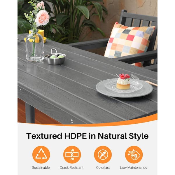 3-Piece Gray HDPE Plastic Outdoor Bar Set with Rectangular Bar Table