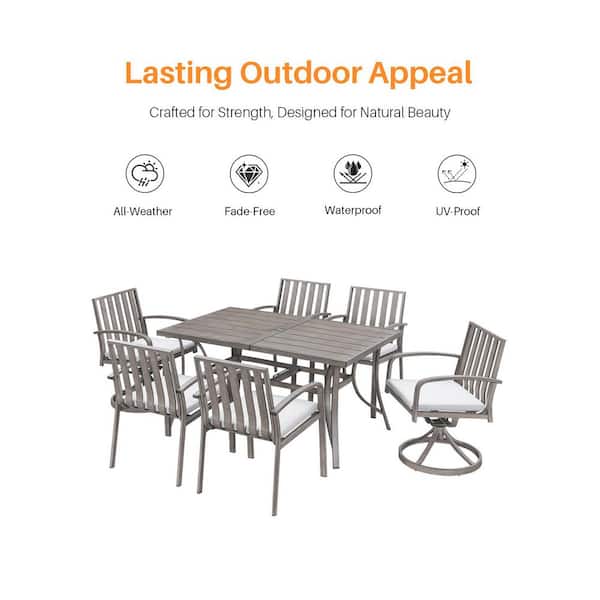 Gray 7-Piece Aluminum Patio Outdoor Dining Set with 2-Swivel Dining Chairs, Rectangular Table and Beige Cushions