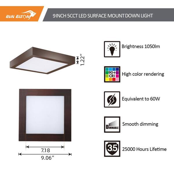2-Pack 9 in. Square Color Selectable Integrated LED Flush Mount Downlight in Bronze