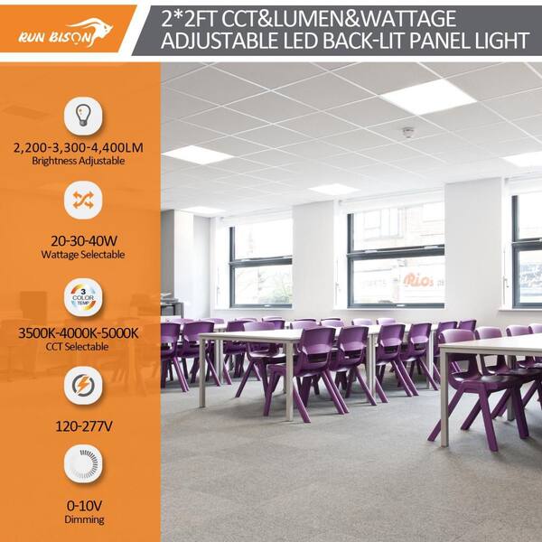 2 ft. x 4 ft. Dimmable White CCT and Wattage Selectable Integrated LED Back-Lit Flat Panel Light