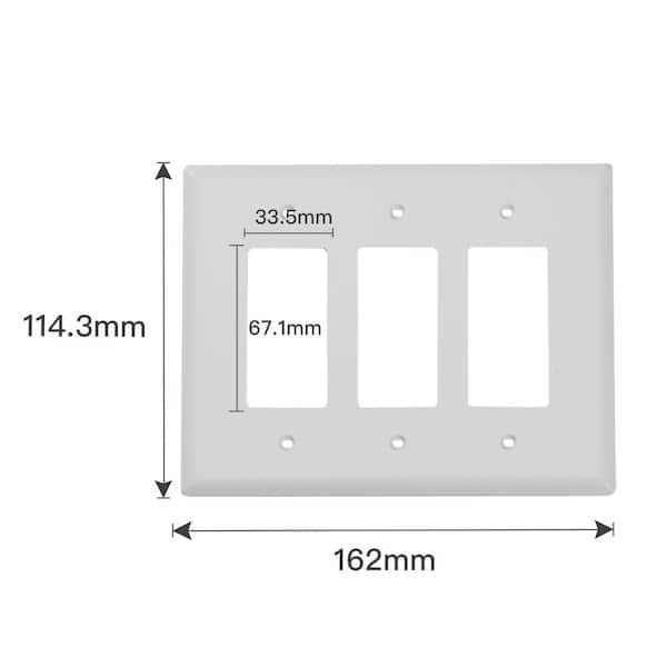 3-Gang Decorator/Rocker Plastic Wall Plate With Screw, White (10-Pack)