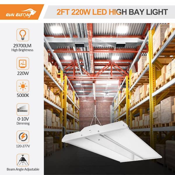 4-Pack 2ft. 25.8 in. 220-Watt Adjustable Panel White 29700 Lumens Integrated LED Dimmable Linear High Bay Light 5000K