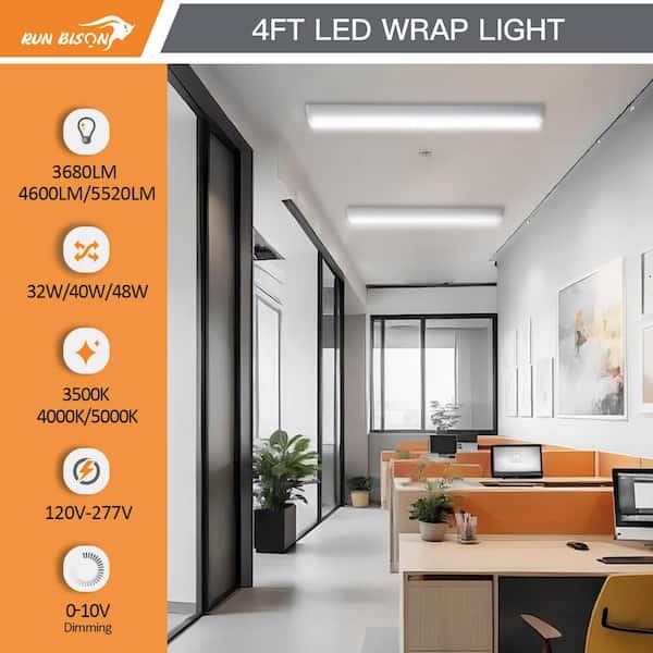4 ft. Integrated LED Dimmable Wraparound Light fixture, CCT/Wattage/Lumens Selectable, 0-10-Volt dimming
