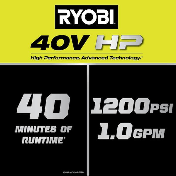 • 1200 PSI 1.0 GPM Pressure Washer features 40V HP technoogy