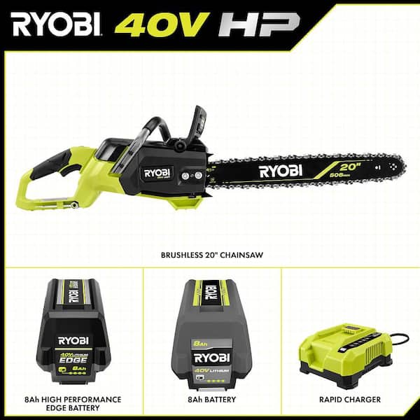40V HP Brushless 20 in. Battery Chainsaw with 8.0 Ah Battery, 8.0 Ah Lithium-Ion High Performance EDGE Battery & Charger