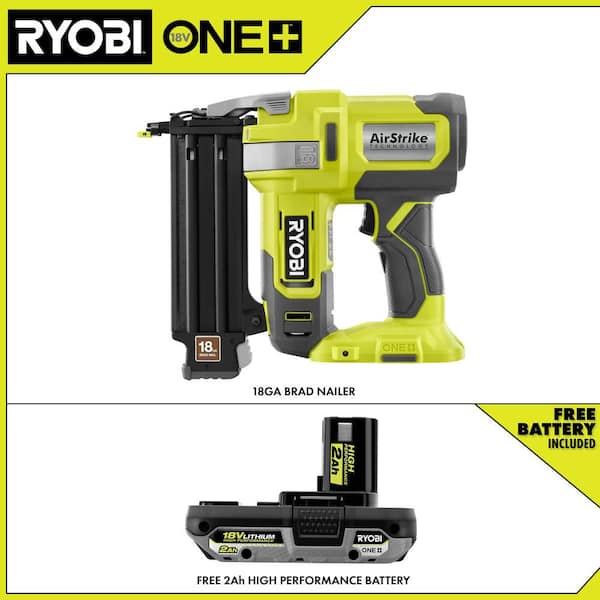ONE+ 18V 18-Gauge Cordless AirStrike Brad Nailer with FREE 2.0 Ah HIGH PERFORMANCE Battery