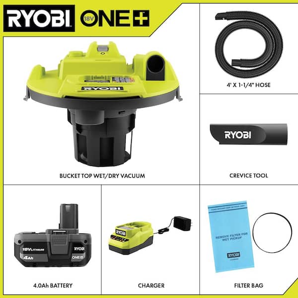ONE+ 18V Cordless 5 Gal. Wet/Dry Vacuum Kit with 1-1/4 in. Hose, Crevice Tool, 4.0 Ah Battery, and Charger